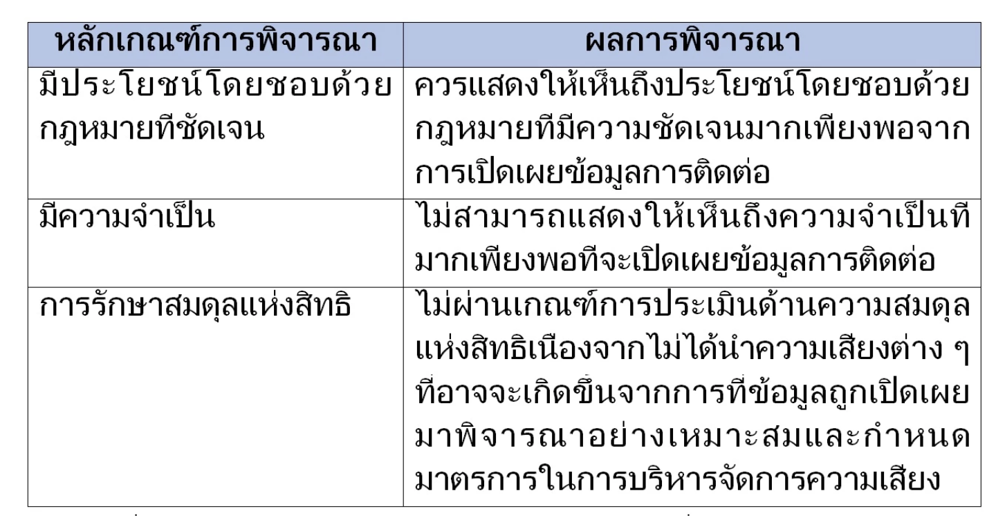 1) การไม่มีฐานทางกฎหมายในการเปิดเผยข้อมูลส่วนบุคคล